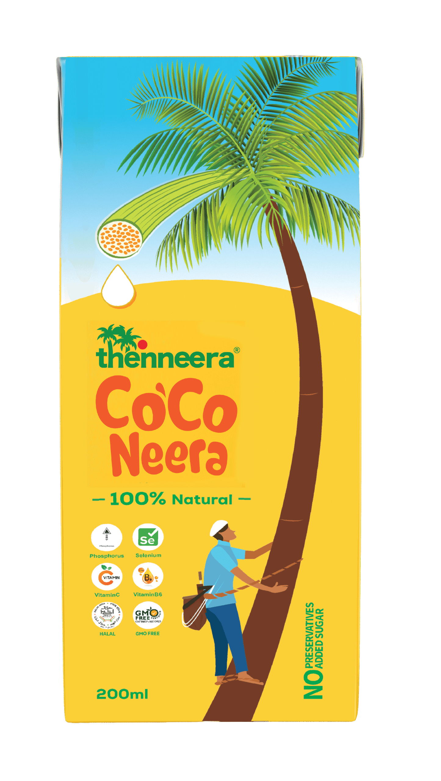 Coco Neera is the sap collected hygienically from the spadix (Flower) of coconut tree, chilled and tetra-packed.